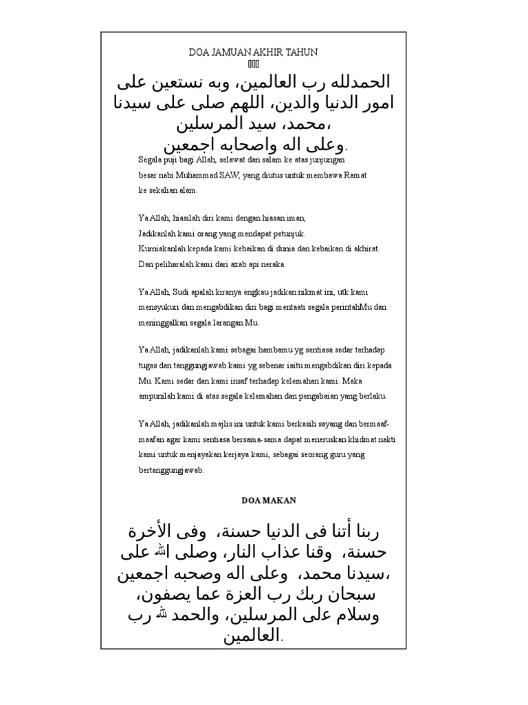 Doa Jamuan Akhir Tahun 2011 Pdf